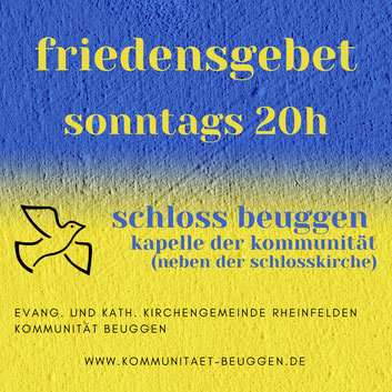 Mehr zur Entstehung der Friedensgebete in der Kommunität und zum Hintergrund im Presseartikel hier. Ein Rück-blick auf das 100. Friedensgebet und ein aus diesem Anlass erschienener Artikel in der Badischen Zeitung fin-det sich (unter dem
